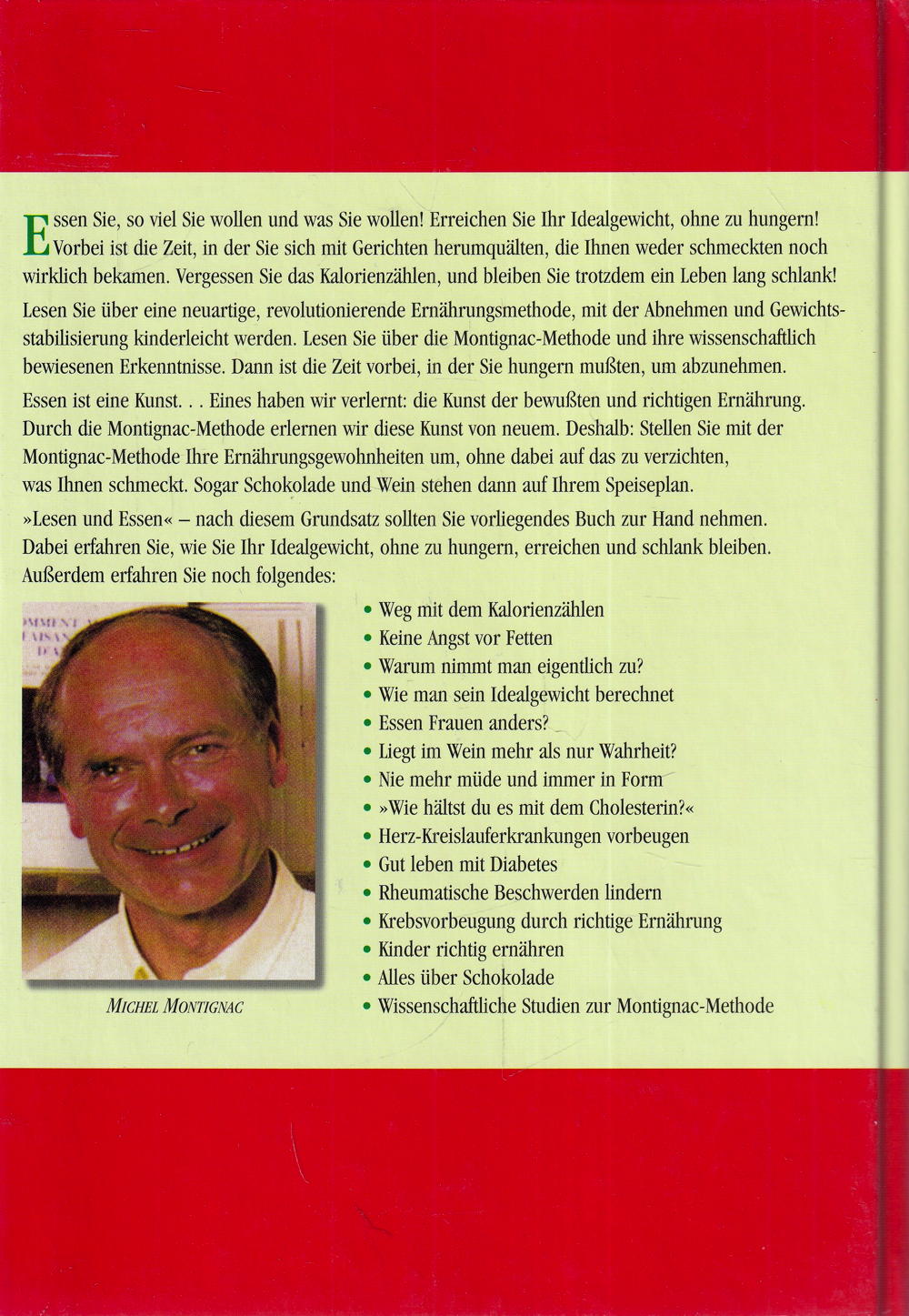 Durch die Montignac-Methode erlernen wir diese Kunst von neuem. Deshalb: Stellen Sie mit der Montignac-Methode Ihre Ernährungsgewohnheiten um, ohne dabei auf das zu verzichten, was Ihnen schmeckt. Sogar Schokolade und Wein stehen dann auf Ihrem Speiseplan.
