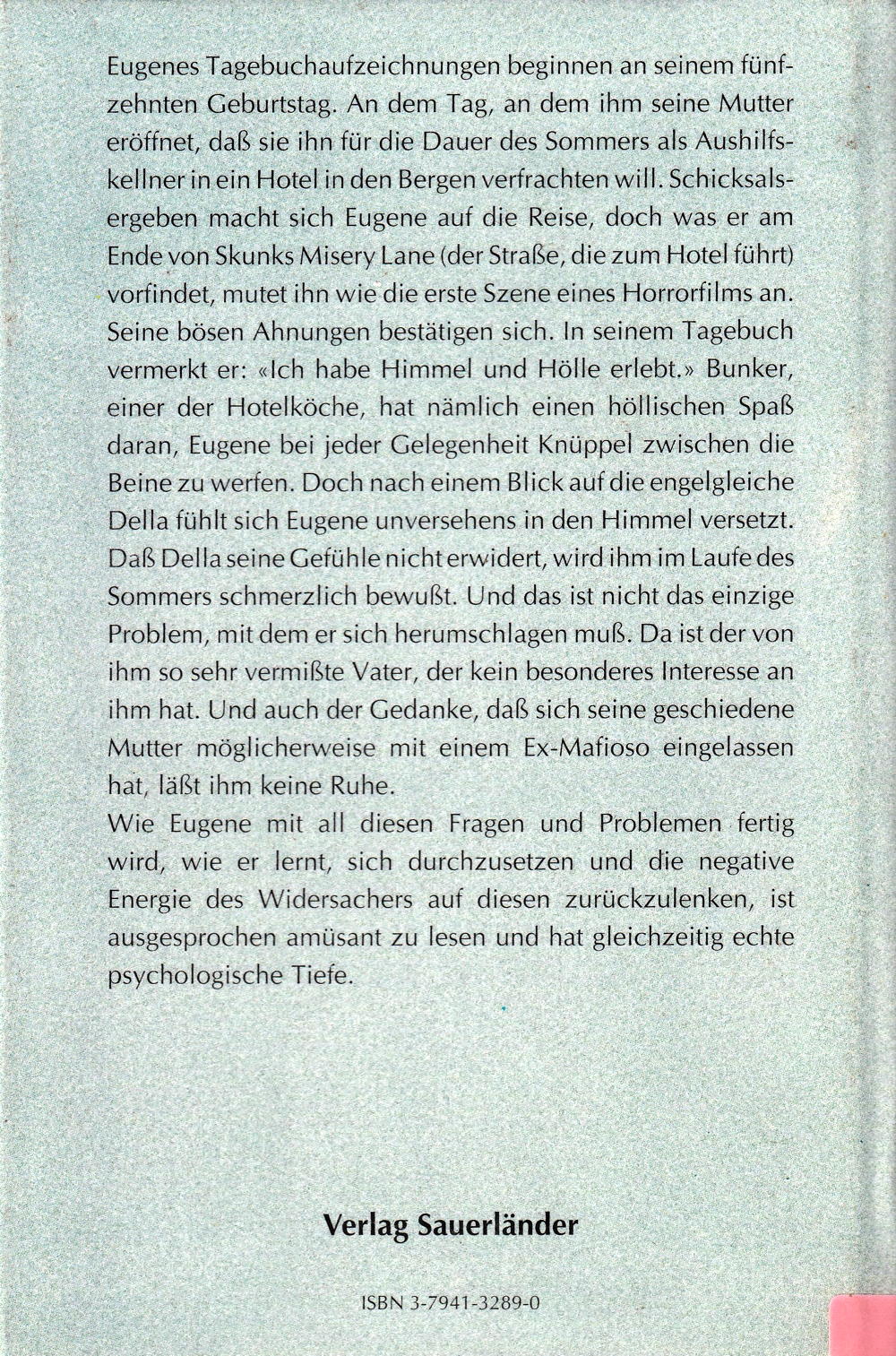 Eugenes Tagebuchaufzeichnungen beginnen zehnten Geburtstag. An dem Tag, eröffnet, dass sie ihn für die Dauer des Sommers als Aushilfskellner in ein Hotel in den Bergen verfrachten will. Schicksalsseinem fünfan an dem ihm seine Mutter ergeben macht sich Eugene auf die Reise, doch was er am Ende von Skunks Misery Lane (der Strasse, die zum Hotel führt)
