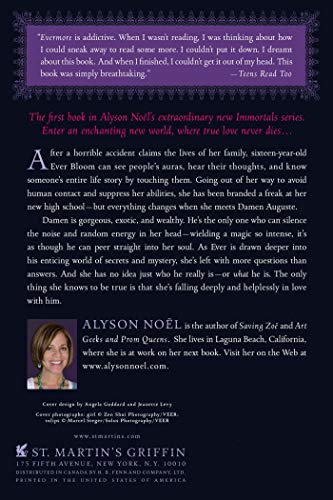 Since the car accident that claimed the lives of her family, sixteen-year-old Ever can see auras and hear people's thoughts, and she goes out of her way to hide from other people until she meets Damen, another psychic teenager who is hiding even more mysteries. Original.