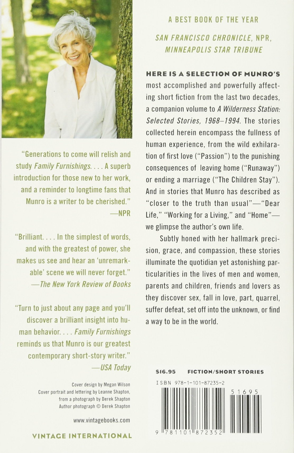 Here is a selection of Munro’s most accomplished and powerfully affecting short fiction from the last two decades, a companion volume to A Wilderness Station: Selected Stories, 1968–1994. These stories encompass the fullness of human experience, from the wild exhilaration of first love (in “Passion”) to the punishing consequences of leaving home (“Runaway”) or ending a marriage (“The Children Stay”). And in stories that Munro has described as “closer to the truth than usual”—”Dear Life,” “Working for a Living,” and “Home”—we glimpse the author’s own life.