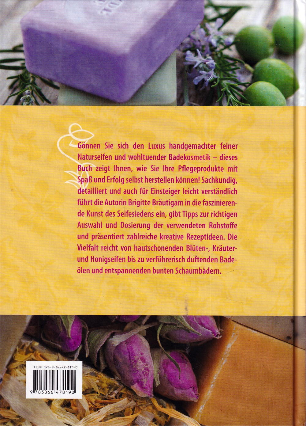 Gönnen Sie sich den Luxus handgemachter feiner Naturseifen und wohltuender Badekosmetik - dieses Buch zeigt Ihnen, wie Sie Ihre Pflegeprodukte mit Spass und Erfolg selbst herstellen können! Sachkundig, detailliert und auch für Einsteiger leicht verständlich führt die Autorin Brigitte Bräutigam in die faszinierende Kunst des Seifensiedens ein, gibt Tipps zur richtigen Auswahl und Dosierung der verwendeten Rohstoffe und präsentiert zahlreiche kreative Rezeptideen. Die Vielfalt reicht von hautschonenden Blüten-, Kräuter- und Honigseifen bis zu verführerisch duftenden Badeölen und entspannenden bunten Schaumbädern.