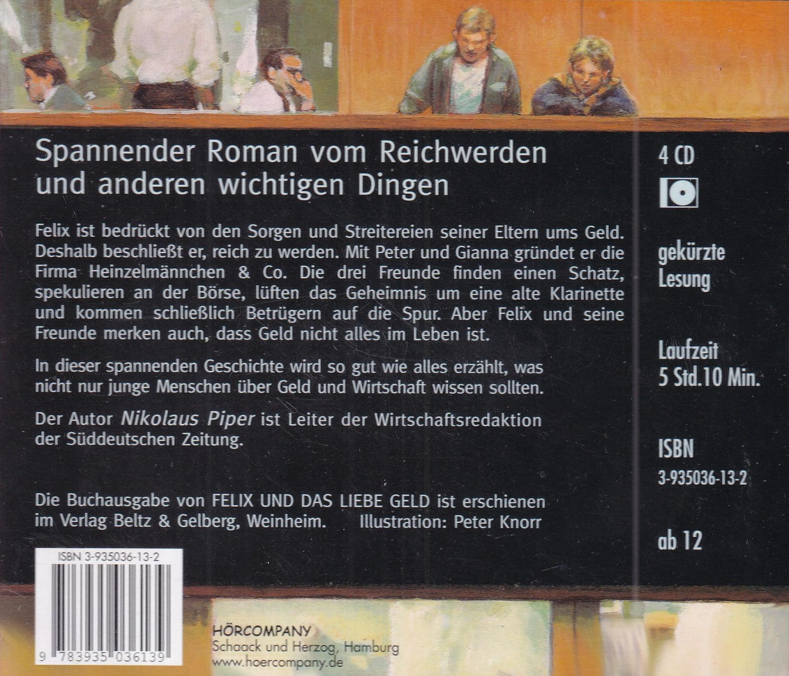 Felix ist bedrückt von den Sorgen und Streitereien seiner Eltern ums Geld. Deshalb beschliesst er, reich zu werden. Mit Peter und Gianna gründet er die Firma Heinzelmännchen & Co. Die drei Freunde finden einen Schatz, spekulieren an der Börse, lüften das Geheimnis um eine alte Klarinette und kommen schliesslich Betrügern auf die Spur. Aber Felix und seine Freunde merken auch, dass Geld nicht alles im Leben ist.