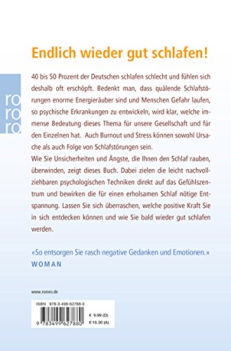 40 bis 50 Prozent der Deutschen schlafen schlecht und fühlen sich deshalb oft erschöpft. Bedenkt man, dass quälende Schlafstörungen enorme Energieräuber sind und Menschen Gefahr laufen, so psychische Erkrankungen zu entwickeln, wird klar, welche immense Bedeutung dieses Thema für unsere Gesellschaft und für den Einzelnen hat. Auch Burnout und Stress können sowohl Ursache als auch Folge von Schlafstörungen sein. Wie Sie Unsicherheiten und Ängste, die Ihnen den Schlaf rauben, überwinden, zeigt dieses Buch. Dabei zielen die leicht nachvollziehbaren psychologischen Techniken direkt auf das Gefühlszentrum und bewirken die für einen erholsamen Schlaf nötige Entspannung. Lassen Sie sich überraschen, welche positive Kraft Sie in sich entdecken können und wie Sie bald wieder gut schlafen werden.