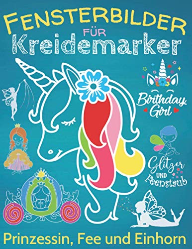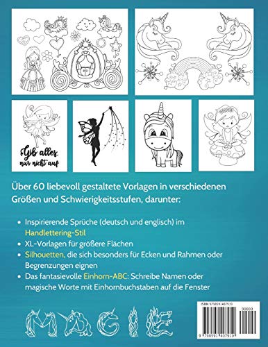 Zauberhafte Fensterdeko mit Prinzessin, Fee & Einhorn, über 60 Kreidebildervorlagen mit XL-Motiven und Einhorn-ABC für Kinder ab 5 Jahre.