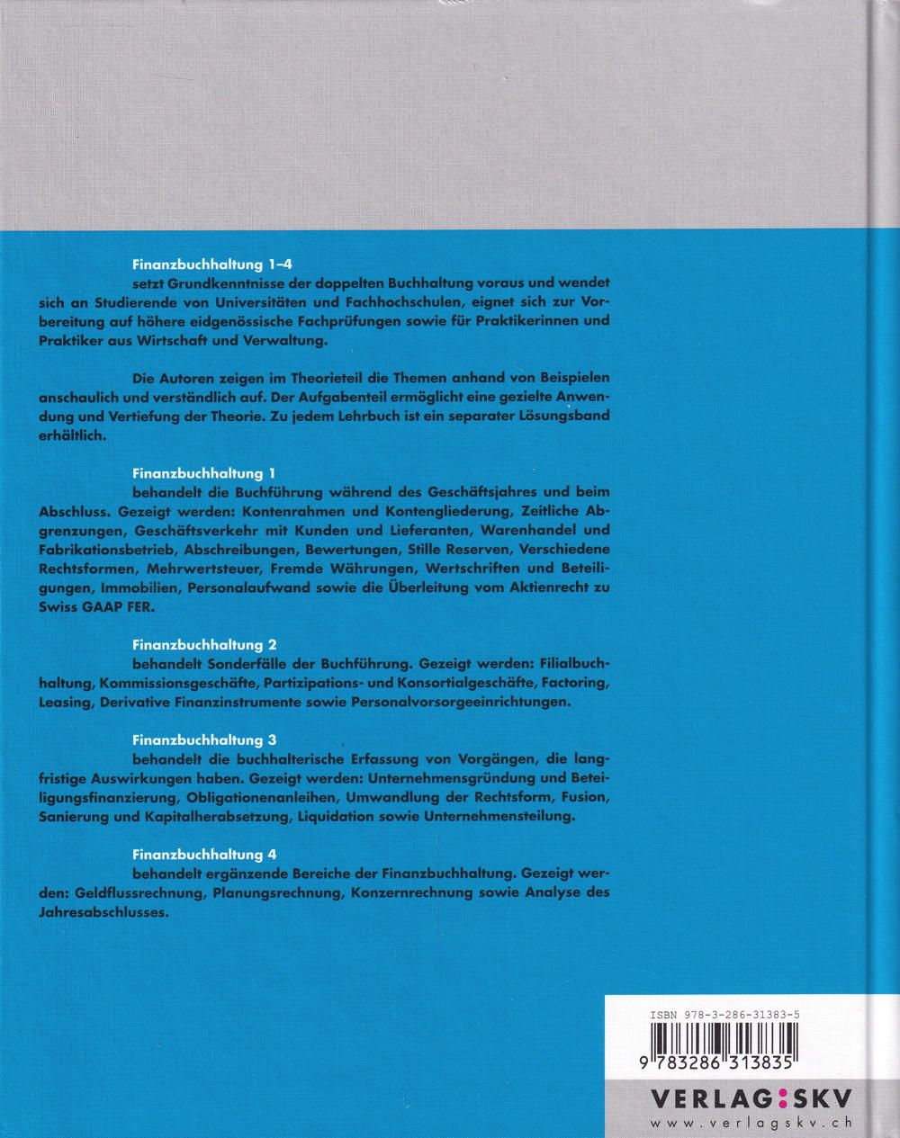 Finanzbuchhaltung 1-4 setzt Grundkenntnisse der doppelten Buchhaltung voraus und wendet sich an Studierende von Universitäten und Fachhochschulen, eignet sich zur Vorbereitung auf höhere eidgenössische Fachprüfungen sowie für Praktikerinnen und Praktiker aus Wirtschaft und Verwaltung.