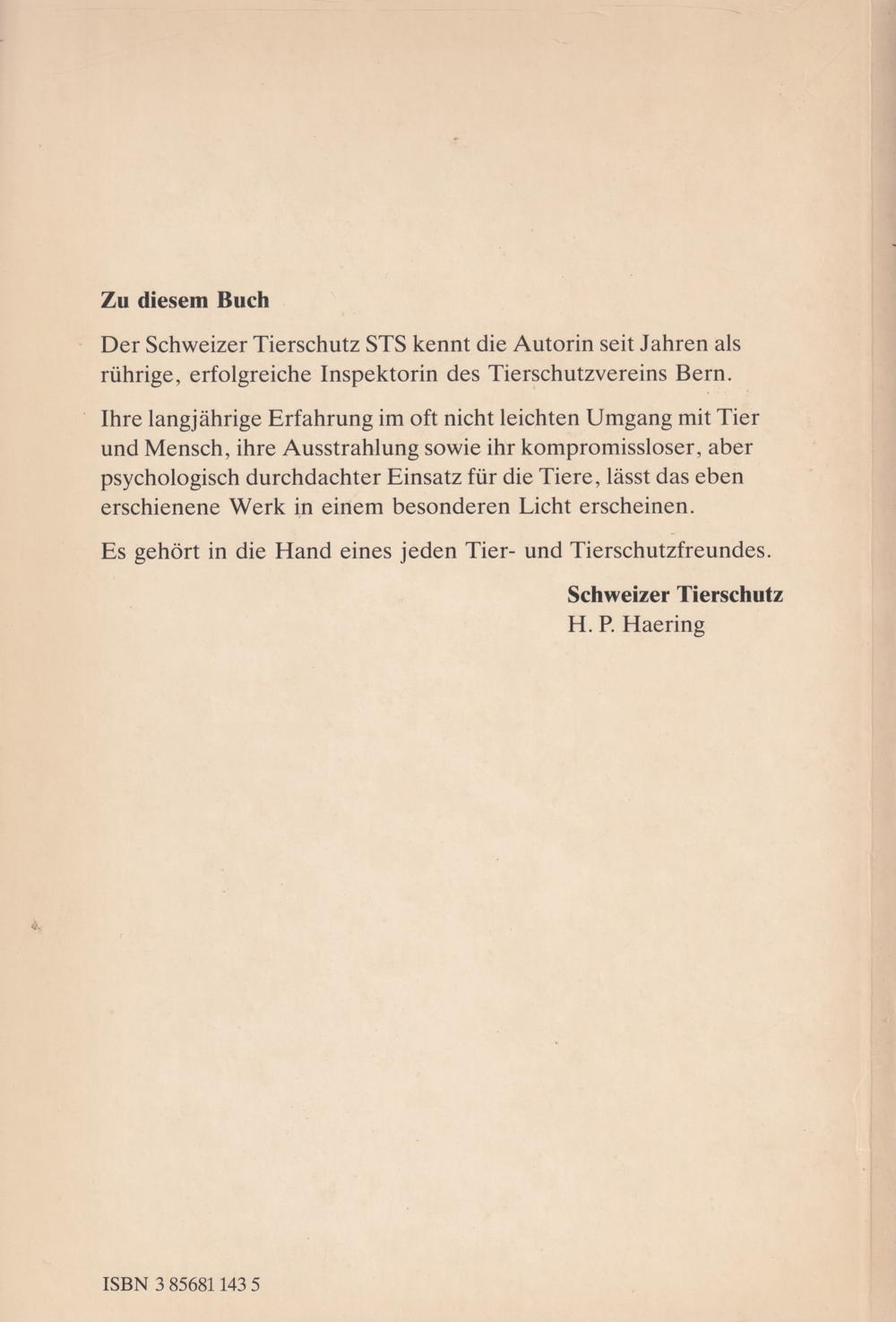 Der Schweizer Tierschutz STS kennt die Autorin seit Jahren als rührige, erfolgreiche Inspektorin des Tierschutzvereins Bern.