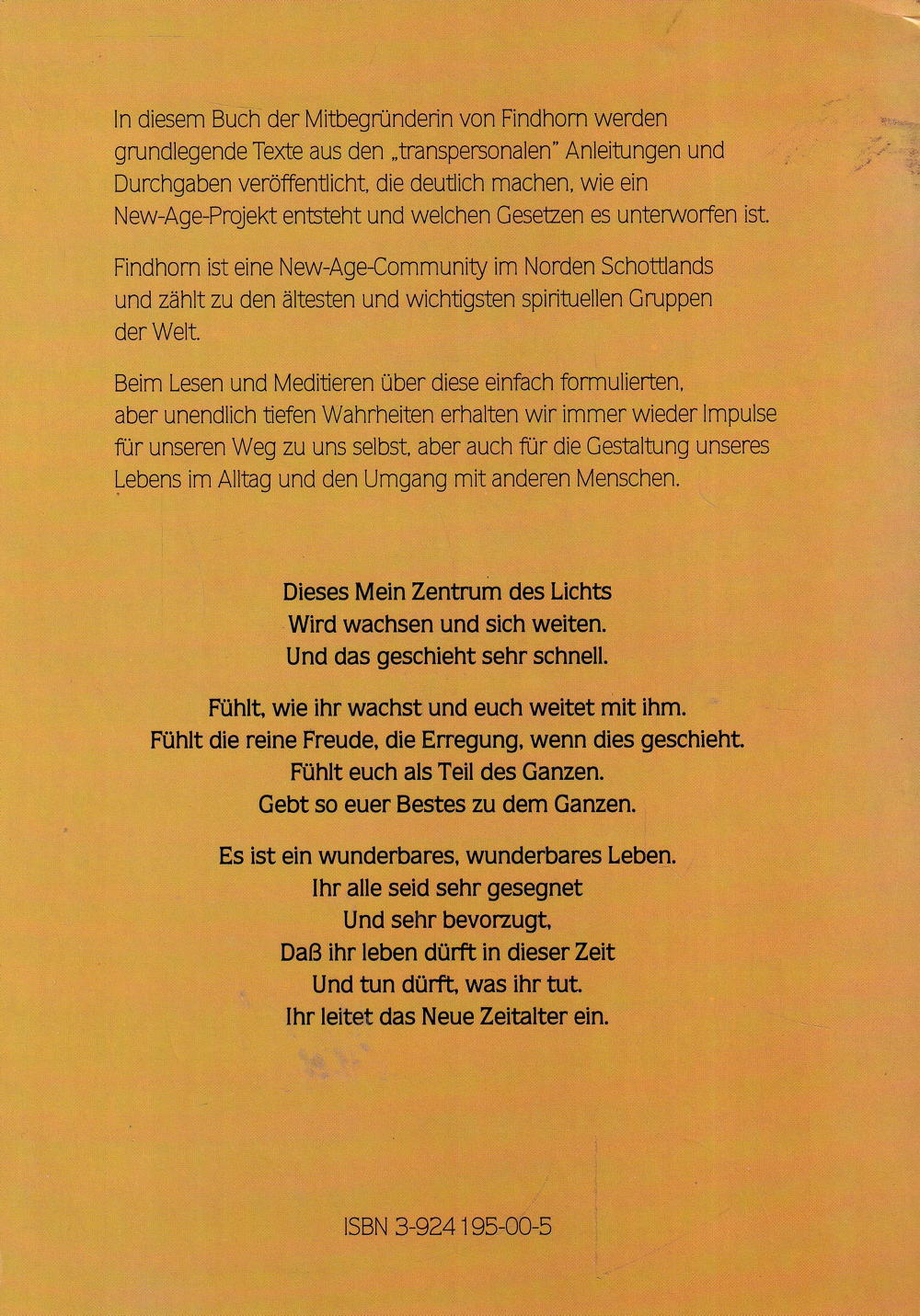 In diesem Buch der Mitbegründerin von Findhorn werden grundlegende Texte aus den „transpersonalen" Anleitungen und Durchgaben veröffentlicht, die deutlich machen, wie ein New-Age-Projekt entsteht und welchen Gesetzen es unterworfen ist.