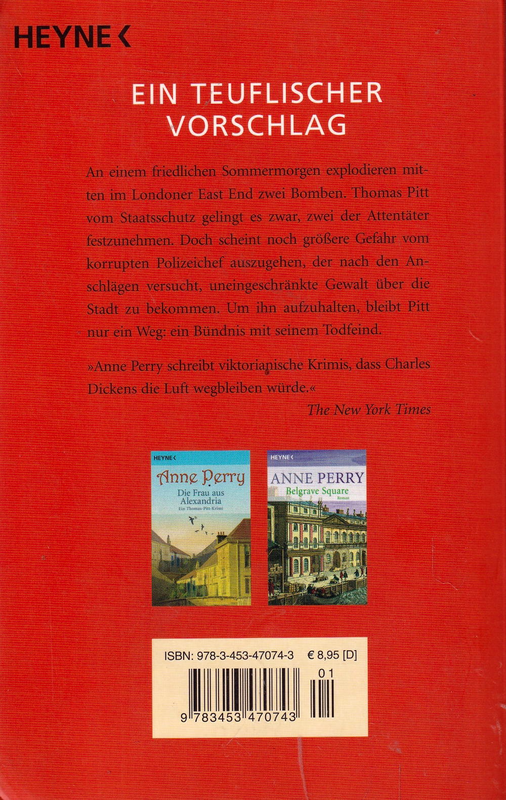 In ihrem neuesten Roman um Inspektor Pitt lässt Anne Perry das viktorianische London wieder auferstehen: Nach einem Bombenattentat versucht der korrupte Polizeichef, uneingeschränkte Gewalt über die Stadt zu bekommen. Um ihn aufzuhalten, bleibt Pitt nur ein Weg: ein Bündnis mit seinem Todfeind.