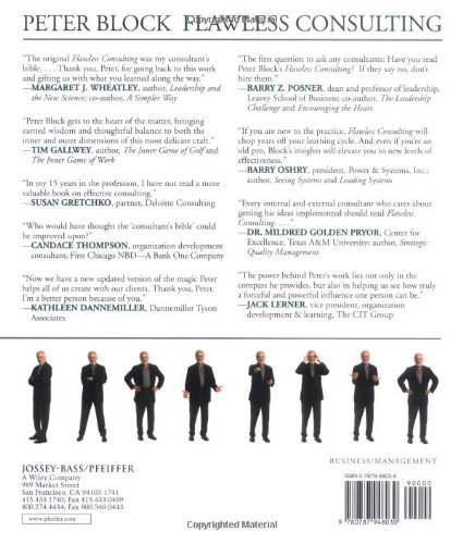 The second edition of the "consultant's bible" is here! For over fifteen years, consultants----both internal and external----have relied on Peter Block's landmark bestseller, Flawless Consulting, to learn how to deal effectively with clients, peers, and others.