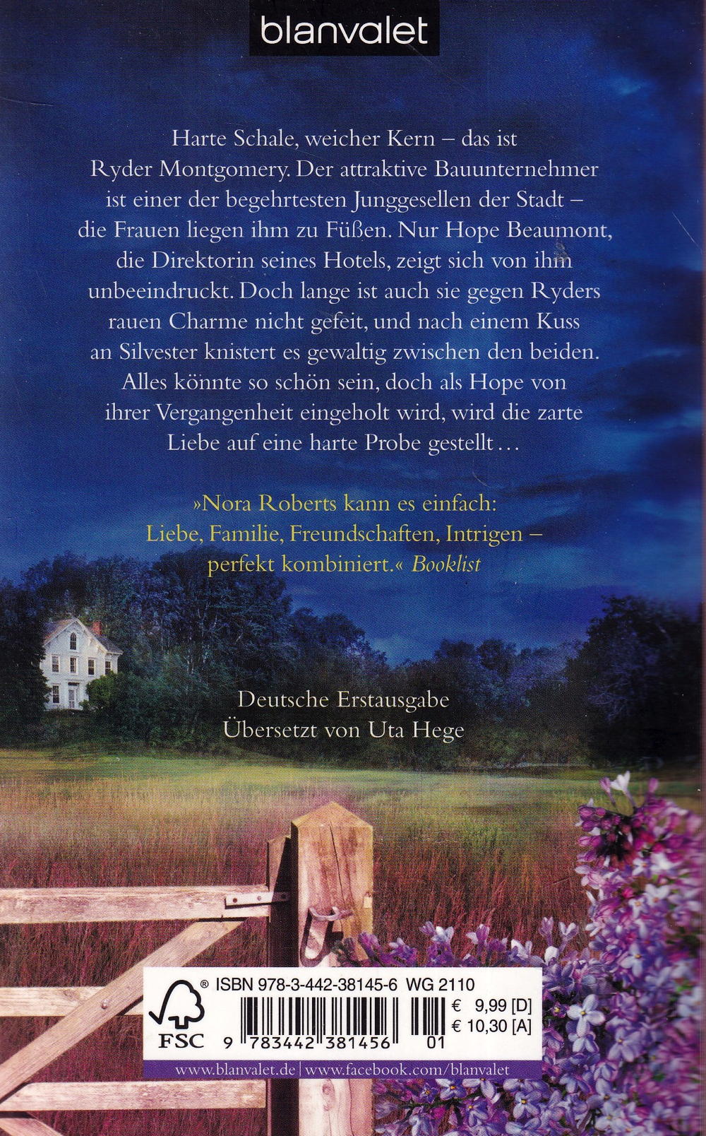 Harte Schale, weicher Kern – das ist Ryder Montgomery. Der attraktive Bauunternehmer ist einer der begehrtesten Junggesellen der Stadt – die Frauen liegen ihm zu Füssen. Nur Hope Beaumont, die Direktorin seines Hotels, dem Boons-Boro Inn, zeigt sich von ihm unbeeindruckt. Doch lange ist auch sie gegen Ryders rauen Charme nicht gefeit, und nach einem Kuss an Silvester knistert es gewaltig. Doch dann wird die schöne junge Frau von ihrer Vergangenheit eingeholt. Hope so verletzlich zu sehen, ruft einen Beschützerinstinkt in Ryder hervor, mit dem er nie gerechnet hätte, und er merkt, wie viel sie ihm inzwischen bedeutet …