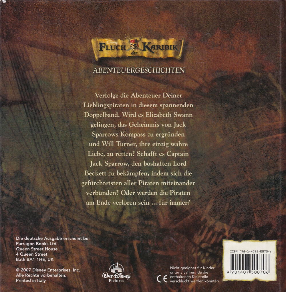 Verfolge die Abenteuer Deiner Lieblingspiraten in diesem spannenden Doppelband. Wird es Elizabeth Swann gelingen, das Geheimnis von Jack Sparrows Kompass zu ergründen und Will Turner, ihre einzig wahre Liebe, zu retten? Schafft es Captain Jack Sparrow, den boshaften Lord Beckett zu bekämpfen, indem sich die gefürchtetsten aller Piraten miteinander verbünden? Oder werden die Piraten am Ende verloren sein... Für immer?