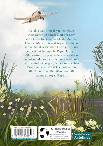 Millilus Reise mit ihrem Hausboot geht weiter. In einem Dorf am Ufer des Flusses lernt sie die blinde Marlene kennen. Marlene sitzt den ganzen Tag in ihrem dunklen Zimmer. Denn rausgehen kann sie nicht, sagt ihr Papa. Das sieht Millilu natürlich ganz anders: Kurzerhand nimmt sie Marlene mit sich und beschliesst, ihr die Welt zu zeigen, denn eines ist dem Bootsmenschen-Kind klar: „Wenn du willst, kannst du alles. Wenn du willst, kannst du sogar fliegen!“