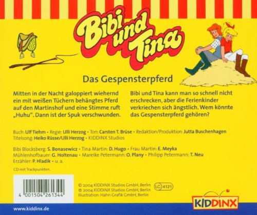 Mitten in der Nacht galoppiert wiehernd ein mit weissen Tüchern behängtes Pferd auf den Martinshof und eine Stimme ruft 'Huhu'. Dann ist der Spuk verschwunden. Bibi und Tina kann man so schnell nicht erschrecken, aber die Ferienkinder verkriechen sich ängstlich. Wem könnte das Gespensterpferd gehören?