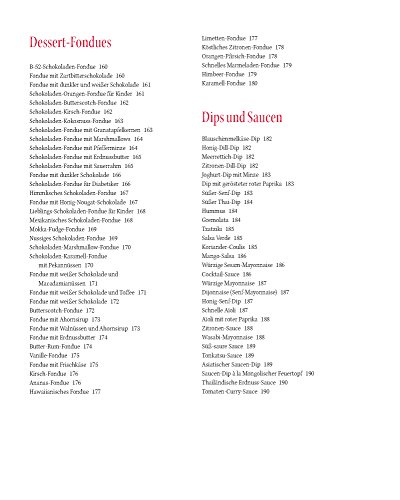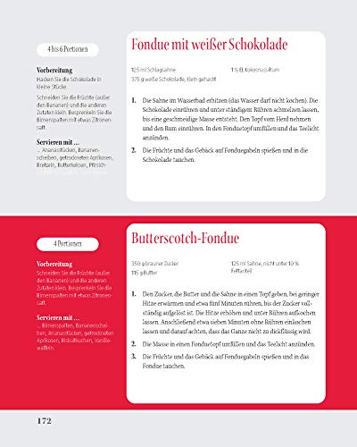 Das perfekte Fondue ist schnell zubereitet und mit den richtigen Rezepten ausgesprochen abwechslungsreich. Entdecken Sie in einer Auswahl aus über 200 Rezepten neue, kreative und vor allem äusserst leckere Möglichkeiten für die Zubereitung des Klassikers. Ob bekannte oder neue Rezepte für Käse- und Ölfondues, verschiedene Brühe- oder himmlische Dessert-Fondues - hier findet man unzählige Variationen, wie sie kaum jemand kennt.