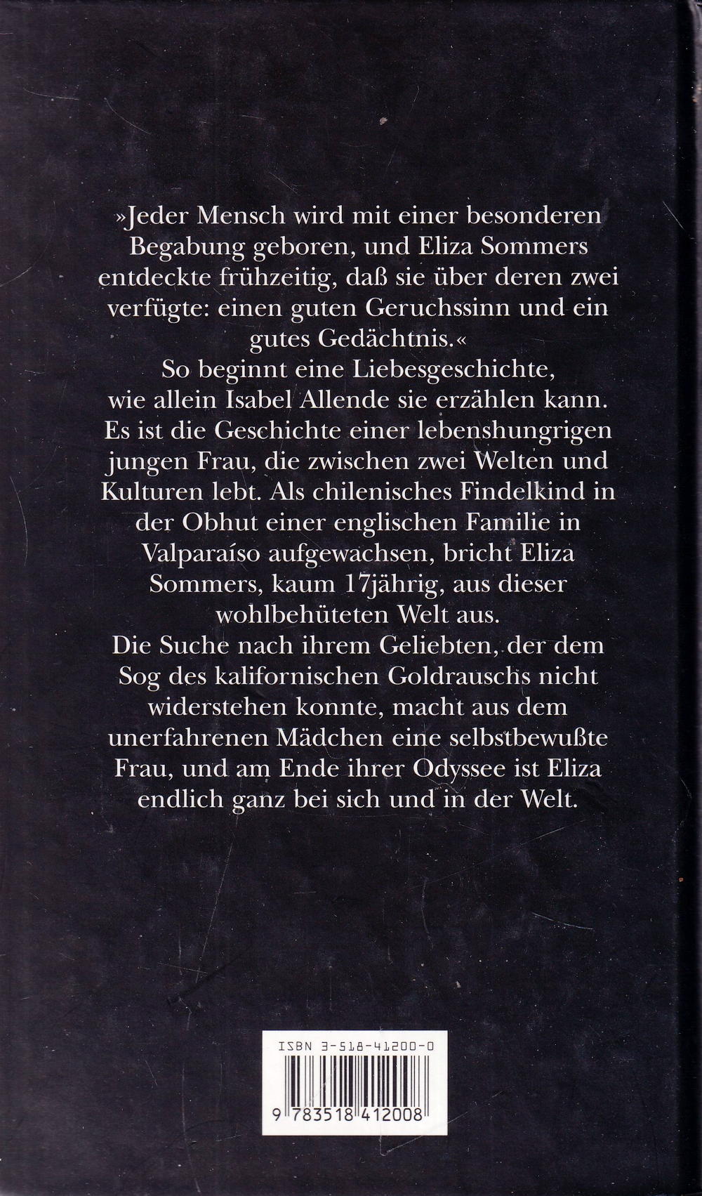 Es ist die Geschichte einer lebenshungrigen jungen Frau, die zwischen zwei Welten und Kulturen lebt. Als chilenisches Findelkind in der Obhut einer englischen Familie in Valparaíso aufgewachsen, bricht Eliza Sommers, kaum 17 jährig, aus dieser wohlbehüteten Welt aus.