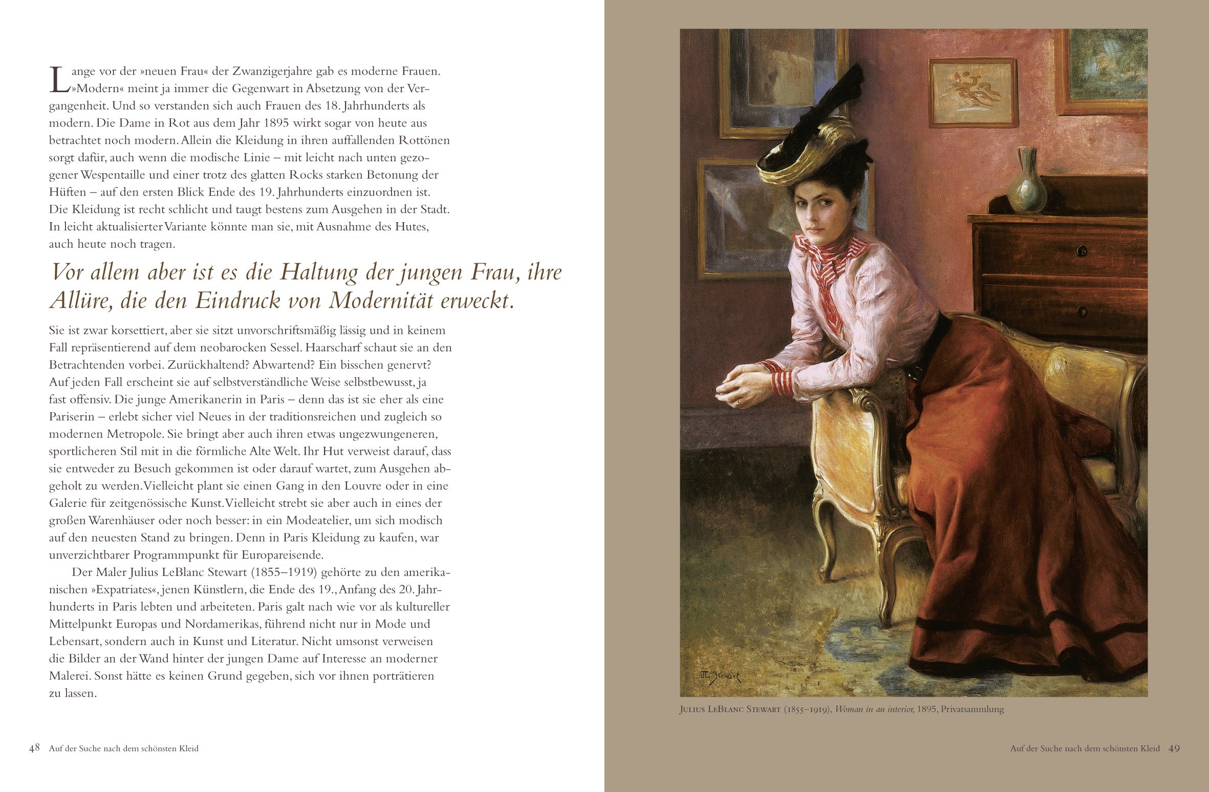 Die Tatsache, dass Frauen nie etwas zum Anziehen haben, ist ein historischer und immer noch höchst aktueller Glücksfall. In seiner Konsequenz führte er dazu, dass in Ateliers, Nähstuben und Stoffhandlungen Couturiers, Schneiderinnen, Hutmacherinnen und Modeschöpferinnen sich den Kopf darüber zerbrachen, was der Frau auf den Leib geschneidert werden sollte. Frauen vor dem Spiegel, in der Anprobe und im Warenhaus; Näherinnen, Modistinnen und Vorführdamen in Ateliers; Damen in sportlichen Kostümen, eleganten Tageskleidern und grossen Abendroben werden auf Gemälden grosser Maler sichtbar und zeigen, dass es in der Mode stets um mehr ging als nur um ein schönes Kleid. Die Modespezialistin Gertrud Lehnert führt uns hinter die Kulissen und erklärt auf ebenso unterhaltsame wie fundierte Weise, warum es kulturhistorisch von Bedeutung ist, dass Frauen immer wieder verzweifelt vor ihren Kleiderschränken stehen. Mit Gemälden von Boucher, Tissot, Macke, Degas, Ingres, Caillebotte, Boldini, Gruau u.v.a.