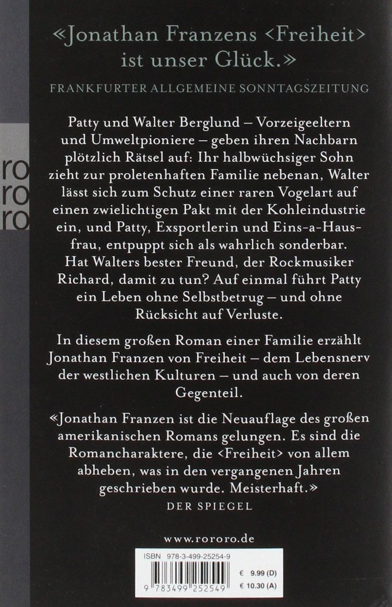 In diesem Roman einer Familie, der zugleich ein großes Epos der letzten dreißig Jahre amerikanischer Geschichte ist, erzählt Jonathan Franzen von Freiheit dem Lebensnerv der westlichen Kulturen und auch dem Gegenteil von ihr, zeigt er die tragikomischen Verwerfungen zeitgenössischer Liebe und Ehe, Freundschaft und Sexualität.