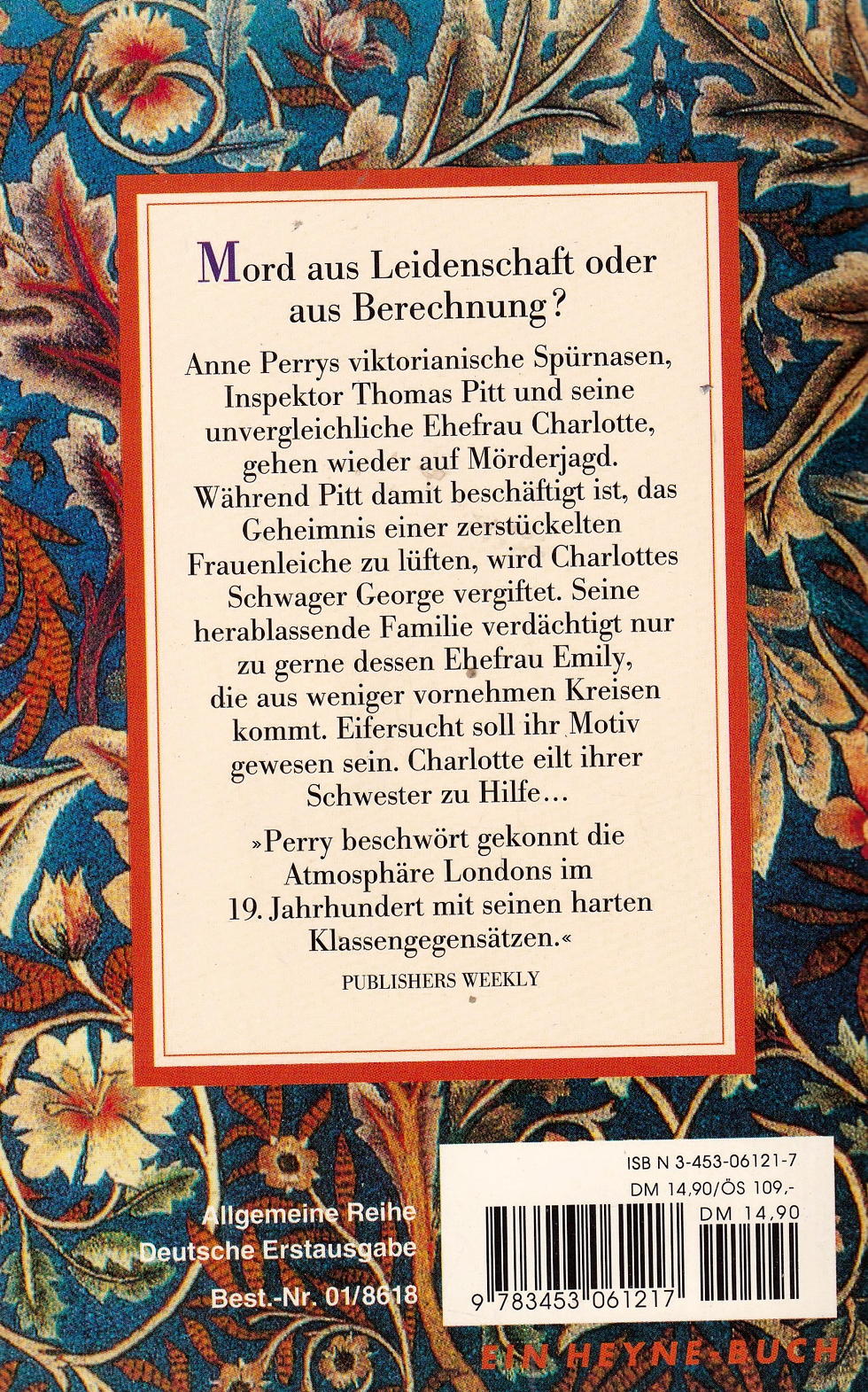 Anne Perrys viktorianische Spürnasen, Inspektor Thomas Pitt und seine unvergleichliche Ehefrau Charlotte, gehen wieder auf Mörderjagd.
