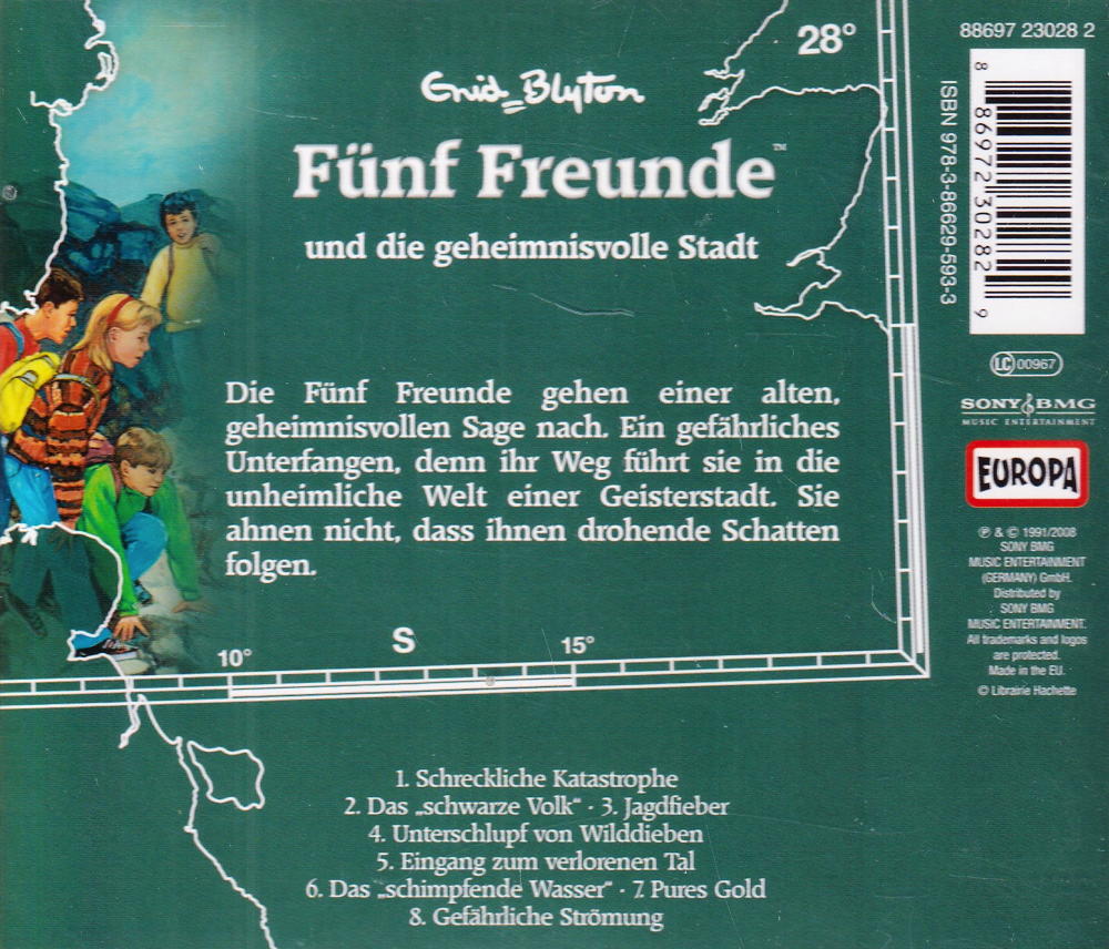 Die Fünf Freunde gehen einer alten, geheimnisvollen Sage nach. Ein gefährliches Unterfangen, denn ihr Weg führt sie in die unheimliche Welt einer Geisterstadt. Sie ahnen nicht, dass ihnen drohende Schatten folgen.