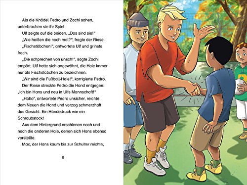 Die »Knödel«, die Erzfeinde der Fussball-Haie, haben einen neuen Spieler: Hans ist ein toller Fussballer, doch mit seinen ausländerfeindlichen Sprüchen sorgt er schnell für schlechte Stimmung im Viertel. Als dann plötzlich Notunterkünfte für afrikanische Flüchtlinge im Viertel aufgestellt werden, droht die Lage zu eskalieren. Pedro und seine Freunde müssen etwas unternehmen!