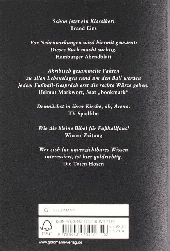 Wenn das kein Volltreffer ist: eine fabelhaften Fussball-Bibel um heilige Rasen, göttliche Spieler und himmlische Tore. In diesem Werk findet man alles, was man rund um das getretene Leder, das die Welt bedeutet, wissen muss. Und einiges, von dem man gar nicht wusste, dass man es wissen sollte: beispielsweise Fakten zur Rasensaat oder der Zusammensetzung einer Stadionwurst. Und natürlich darf der Wortlaut von Trapattonis Wutausbruch ebenso wenig fehlen wie ein Exkurs zur Tante-Käthe-Frisur. Aktualisierte und erweiterte Ausgabe.