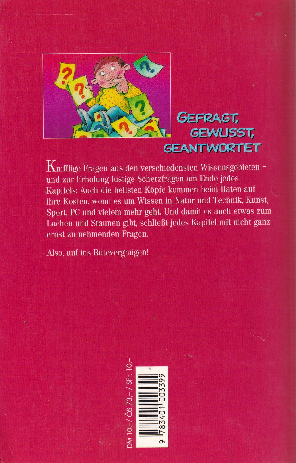 Knifflige Fragen aus den verschiedensten Wissensgebieten und zur Erholung lustige Scherzfragen am Ende jedes Kapitels: Auch die hellsten Köpfe kommen beim Raten auf ihre Kosten, wenn es um Wissen in Natur und Technik, Kunst, Sport, PC und vielem mehr geht. Und damit es auch etwas zum Lachen und Staunen gibt, schliesst jedes Kapitel mit nicht ganz ernst zu nehmenden Fragen.