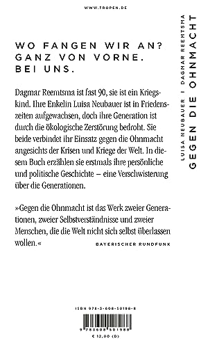 Sie wurden in sehr unterschiedliche und sehr schwierige Zeiten hineingeboren, mussten früh eine eigene Haltung finden: Dagmar Reemtsma wurde in Zeiten des erstarkenden Nationalsozialismus geboren, ihr Vater kam in einem KZ ums Leben. Luisa Neubauer musste verstehen, dass das Land, in dem sie aufwächst, ihre Generation nicht vor der Klimakrise schützt. Als sie ihr Studium aufnimmt, um die ökologischen Katastrophen besser zu verstehen, stirbt ihr Vater. Doch der Ohnmacht zu erliegen, war für beide nie eine Option. Der Krieg gegen die Ukraine brach mitten in die Gespräche zu diesem Buch. Keine von beiden hätte geglaubt, je wieder Krieg in Europa erleben zu müssen. Und wieder stehen sie vor Haltungsfragen, vor Verantwortungsfragen und der Frage, was man der Ohnmacht entgegenstellt.