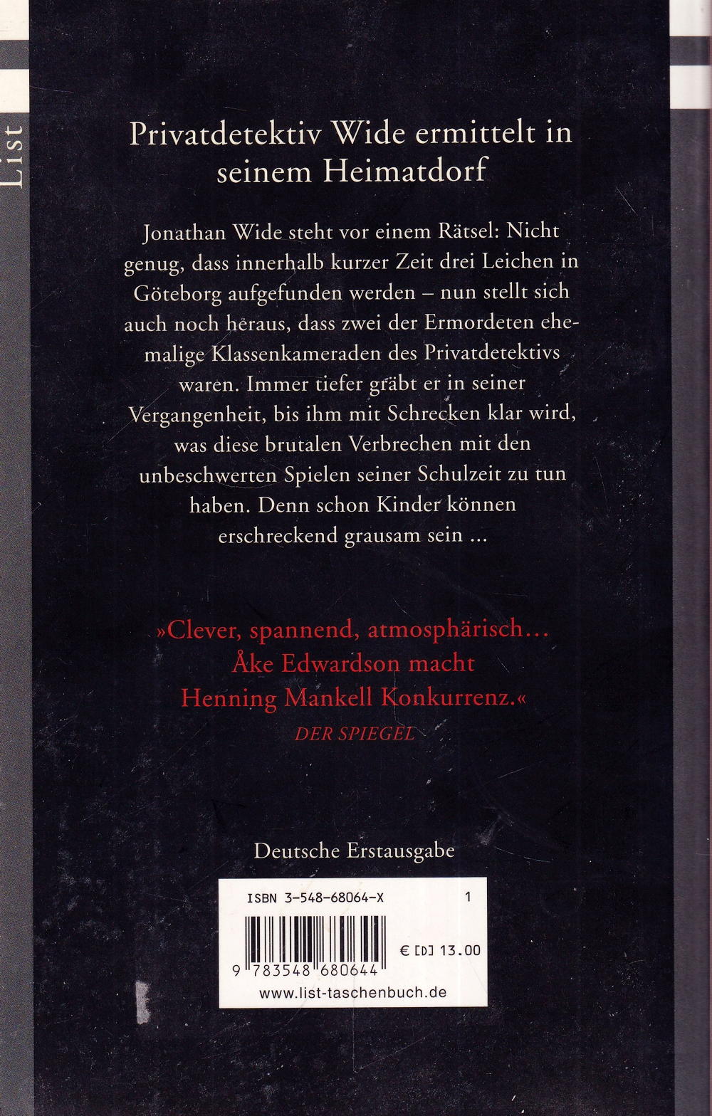 Innerhalb kürzester Zeit werden drei Leichen in Göteborg aufgefunden - und nun stellt sich auch noch heraus, dass zwei der Ermordeten ehemalige Klassenkameraden von Privatdetektiv Jonathan Wide waren. Immer tiefer gräbt dieser in seiner Vergangenheit, bis ihm mit Schrecken klar wird, dass ein harmloses sommerliches Zeltlager einer Schulklasse auch nach zwanzig Jahren noch mörderische Konsequenzen haben kann…