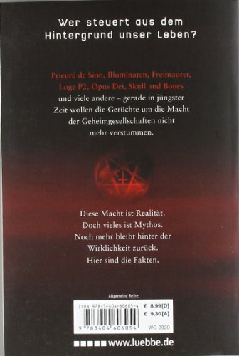 Prieuré de Sion, Illuminaten, Freimaurer, Loge P2, Opus Dei, Skull and Bones und viele andere - gerade in jüngster Zeit wollen die Gerüchte um die Macht der Geheimgesellschaften nicht mehr verstummen. Diese Macht ist Realität. Doch vieles ist Mythos. Noch mehr bleibt hinter der Wirklichkeit zurück. Hier sind die Fakten.