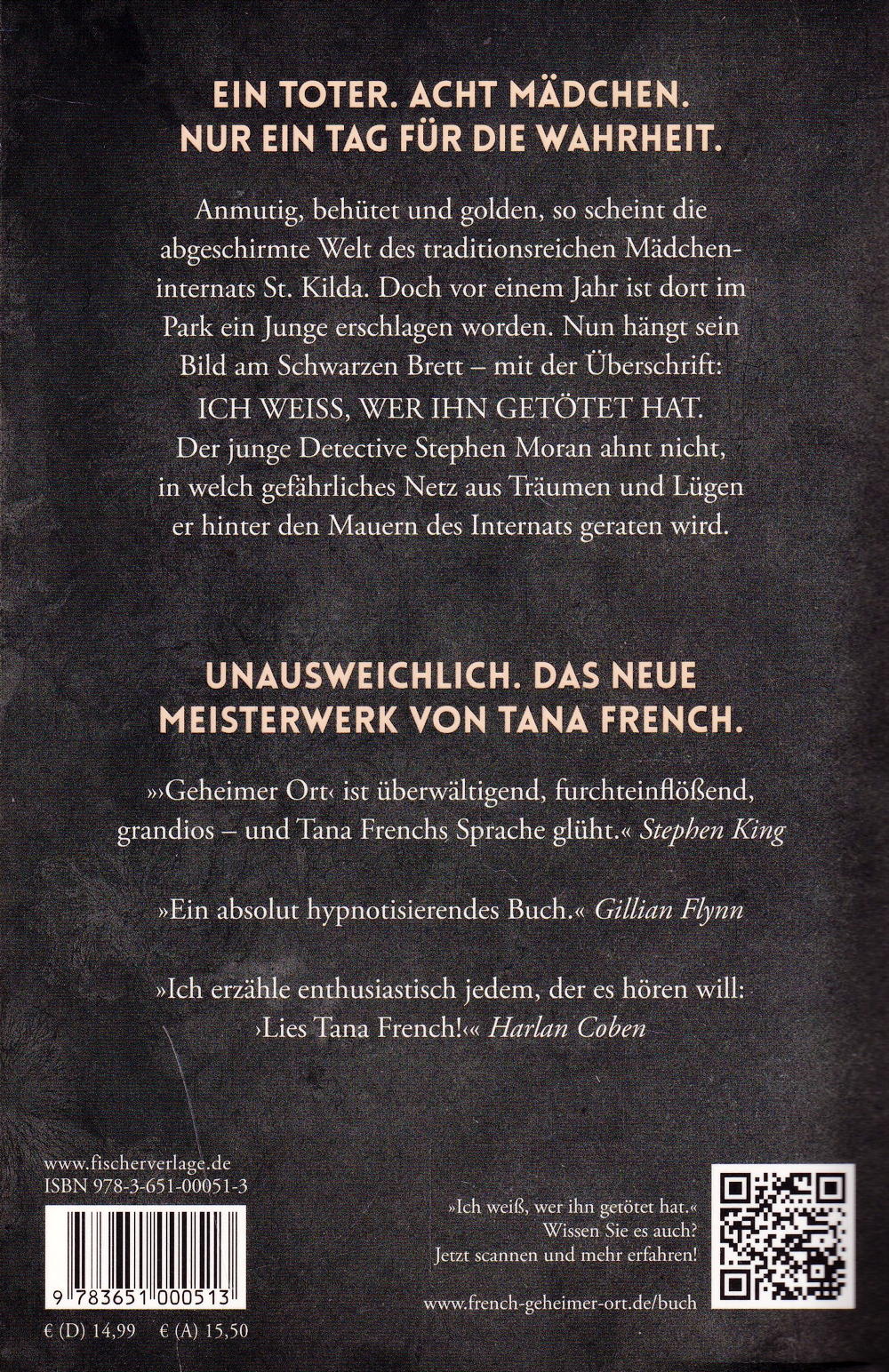 Anmutig, behütet und golden, so scheint die abgeschirmte Welt des traditionsreichen Mädcheninternats St. Kilda. Doch vor einem Jahr ist dort im Park ein Junge erschlagen worden. Nun hängt sein Bild am Schwarzen Brett - mit der Überschrift: ICH WEISS, WER IHN GETÖTET HAT. Nur eines von acht Mädchen kann die Karte aufgehängt haben. In zwei Cliquen stehen sie sich gegenüber - unverbrüchliche Freundinnen, erbarmungslose Feindinnen. Der junge Detective Stephen Moran kennt eines der Mädchen, Holly Mackey, aus einem früheren Fall und meint zu wissen, was auf dem Spiel steht. Bis er hinter den Mauern von St. Kilda selbst in das verfängliche Netz aus Träumen und Lügen gerät.