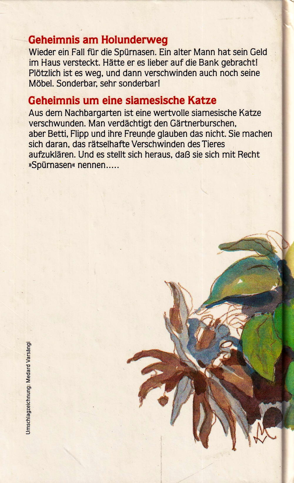 Aus dem Nachbargarten ist eine wertvolle siamesische Katze verschwunden. Man verdächtigt den Gärtnerburschen aber Betti, Flipp und ihre Freunde glauben das nicht. Sie machen sich daran. Das rätselhafte Verschwinden des Tieres aufzuklaren. Und es stellt sich heraus, dass sie sich mit Recht "Spürnasen" nennen