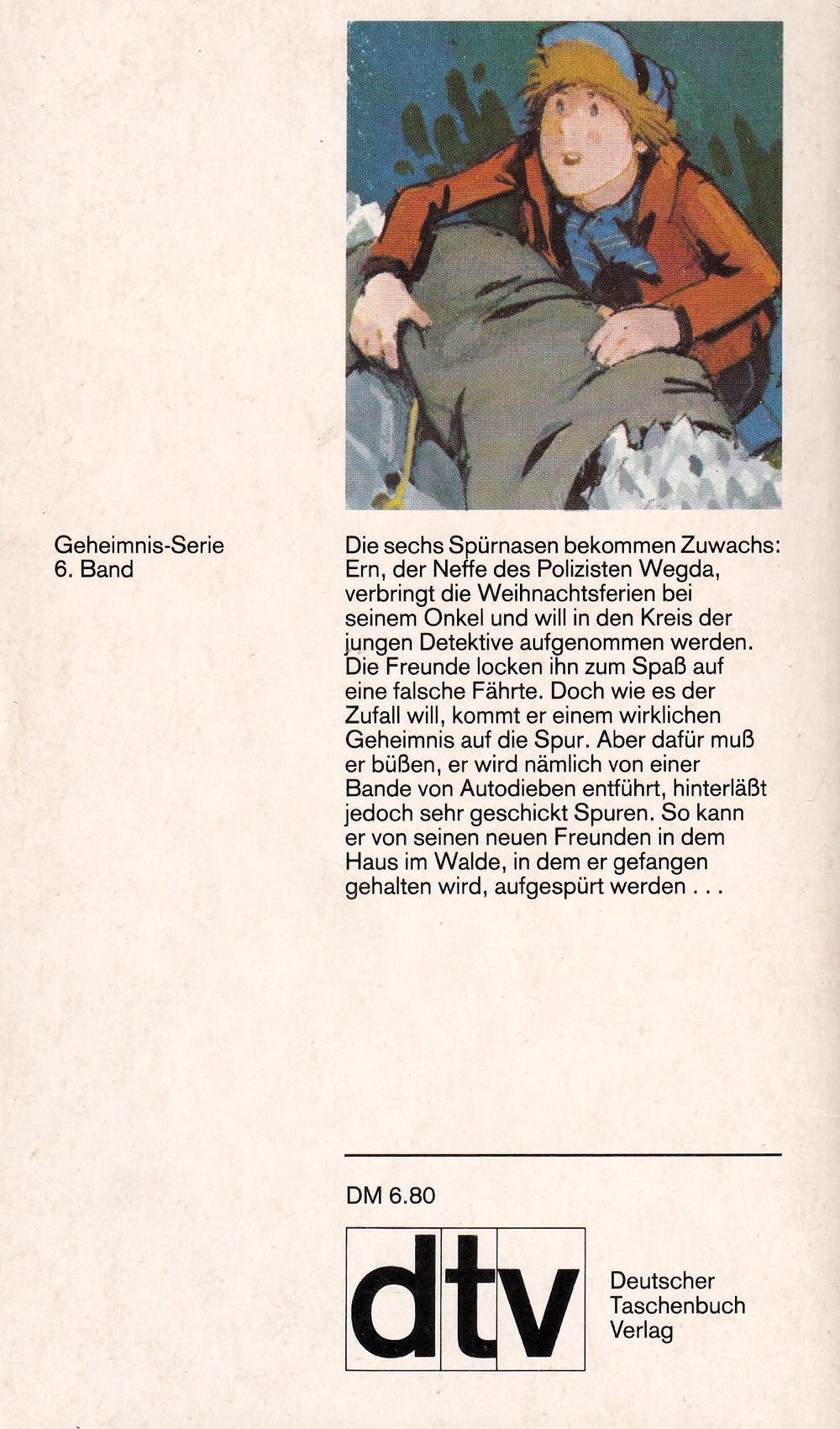 Die sechs Spürnasen bekommen Zuwachs: Ern, der Neffe des Polizisten Wegda, verbringt die Weihnachtsferien bei seinem Onkel und will in den Kreis der jungen Detektive aufgenommen werden. Die Freunde locken ihn zum Spass auf eine falsche Fährte. Doch wie es der Zufall will, kommt er einem wirklichen Geheimnis auf die Spur. Aber dafür muss er büssen, er wird nämlich von einer Bande von Autodieben entführt, hinterlässt jedoch sehr geschickt Spuren. So kann er von seinen neuen Freunden in dem Haus im Walde, in dem er gefangen gehalten wird, aufgespürt werden...