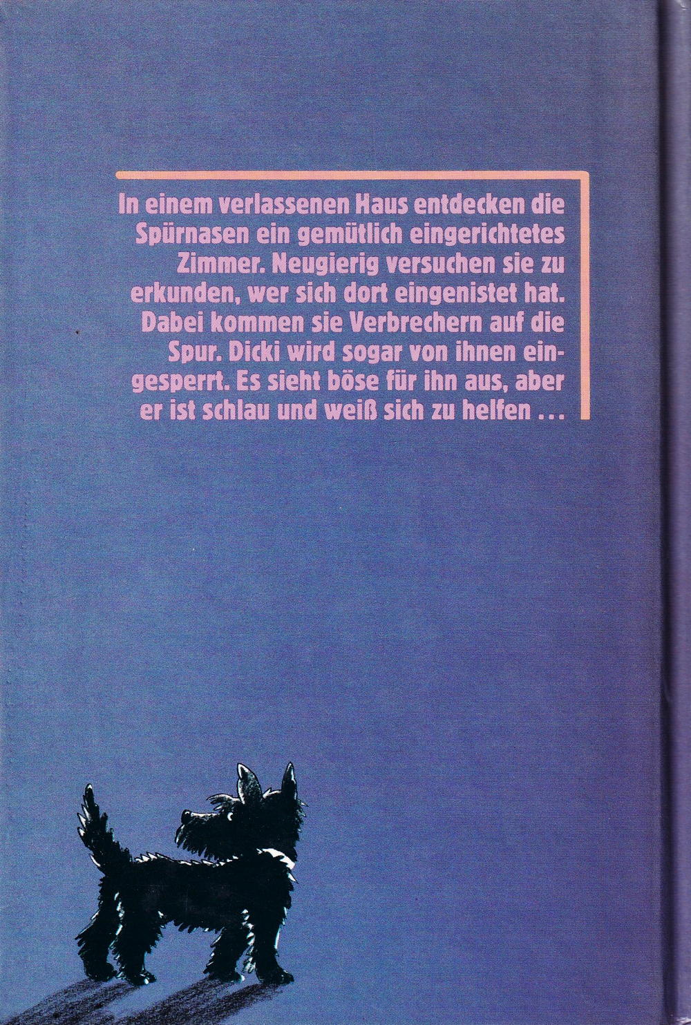 In einem verlassenen Haus entdecken die Spürnasen ein gemütlich eingerichtetes Zimmer. Neugierig versuchen sie zu erkunden, wer sich dort eingenistet hat. Dabei kommen sie Verbrechern auf die Spur. Dicki wird sogar von ihnen eingesperrt. Es sieht böse für ihn aus, aber er ist schlau und weiß sich zu helfen.
