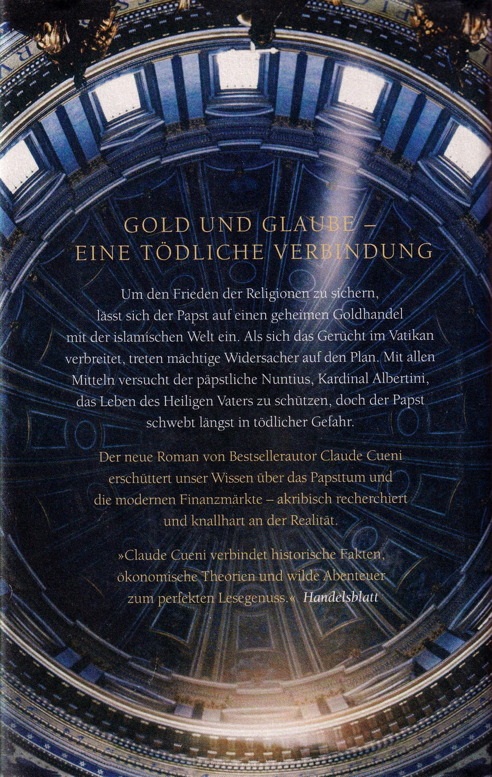 Um den Frieden der Religionen zu sichern lasst sich der Papst auf einen geheimen Goldhandel mit der islamischen Welt ein. Als sich das Gerücht im Vatikan verbreitet, treten mächtige Widersacher auf den Plan. Mit allen Mitteln versucht der päpstliche Nuntius, Kardinal Albertini, das Leben des Heiligen Vaters zu schützen, doch der Papst schwebt längst in tödlicher Gefahr