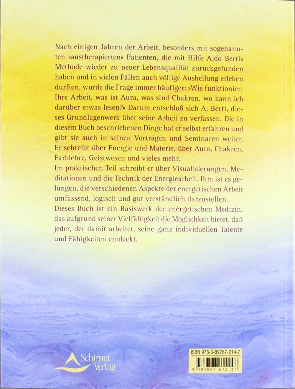 Nach einigen Jahren der Arbeit, besonders mit sogenannten 'austherapierten' Patienten, die mit Hilfe Aldo Bertis Methode wieder zu neuer Lebensqualität zurückgefunden haben und in vielen Fällen auch völlige Ausheilung erleben durften, wurde die Frage immer häufiger gestellt: 'Wie funktioniert Ihre Arbeit, was ist Aura, was sind Chakren, wo kann ich darüber etwas lesen?' Darum entschloss sich A. Berti, dieses Grundlagenwerk über seine Arbeit zu verfassen. Die in diesem Buch beschriebenen Dinge hat er selbst erfahren und gibt sie auch in seinen Vorträgen und Seminaren weiter.