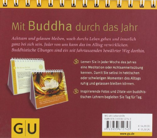 Immer mehr Menschen erkennen den Wert buddhistischer Übungspraxis. Der neuartige Tischaufsteller bietet allen Interessierten einen leichten wie fundierten Einstieg. Gelassen wie ein Buddha funktioniert wie ein Kurs, der den Leser ein Jahr lang mit Achtsamkeitsübungen für den Alltag, Meditationen sowie Übungen zum Umgang mit schwierigen Gefühlen begleitet. Menschen mit Vorerfahrung können sich aber auch wie aus einer Werkzeugkiste bedienen und gezielt Übungen auswählen, die sie aktuell brauchen. Auch optisch ist der Tischaufsteller ein willkommener Begleiter für den Alltag, den man sich gern auf den Schreibtisch oder aufs Nachtkästchen stellt. Ästhetische Gestaltung, inspirierende Fotos mit buddhistischen Motiven sowie Zitate von buddhistischen Lehrern machen ihn zu einem wunderbares Geschenk für alle, die bewusster und achtsamer durchs Leben gehen möchten.
