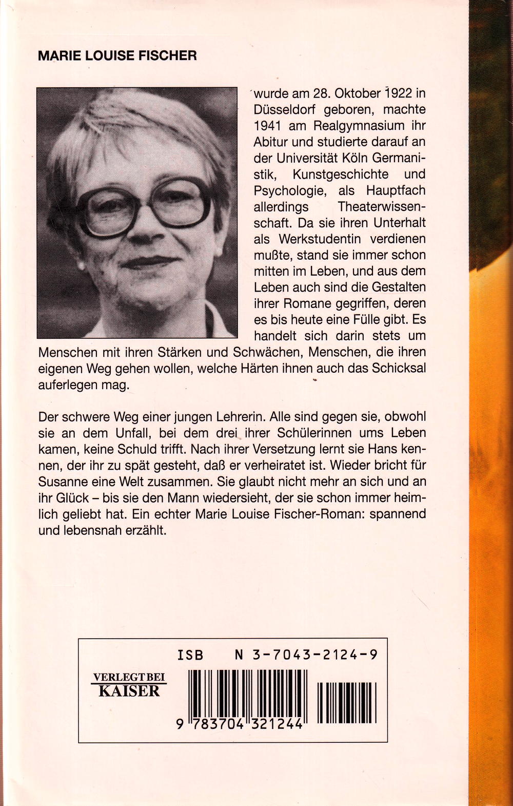 Der schwere Weg einer jungen Lehrerin. Alle sind gegen sie, obwohl sie an dem Unfall, bei dem drei ihrer Schülerinnen ums Leben kamen, keine Schuld trifft. Nach ihrer Versetzung lernt sie Hans kennen, der ihr zu spät gesteht, dass er verheiratet ist. Wieder bricht für Susanne eine Welt zusammen. Sie glaubt nicht mehr an sich und an ihr Glück – bis sie den Mann wiedersieht, der sie schon immer heimlich geliebt hat. Ein echter Marie Louise Fischer-Roman: spannend und lebensnah erzählt.
