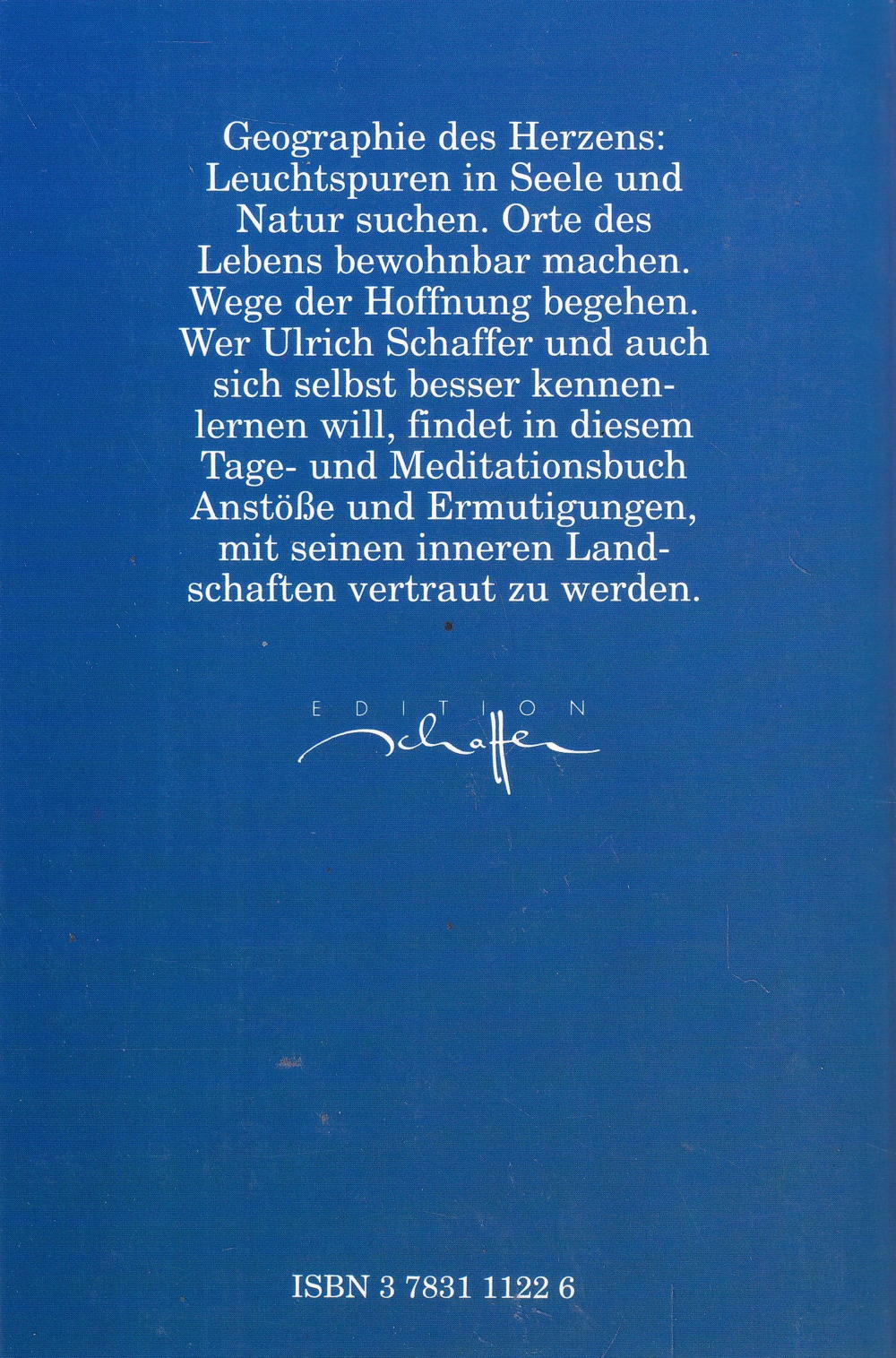 Geographie des Herzens: Leuchtspuren in Seele und Natur suchen. Orte des Lebens bewohnbar machen. Wege der Hoffnung begehen. Wer Ulrich Schaffer und auch sich selbst besser kennenlernen will, findet in diesem Tage- und Meditationsbuch Anstösse und Ermutigungen, mit seinen inneren Landschaften vertraut zu werden.