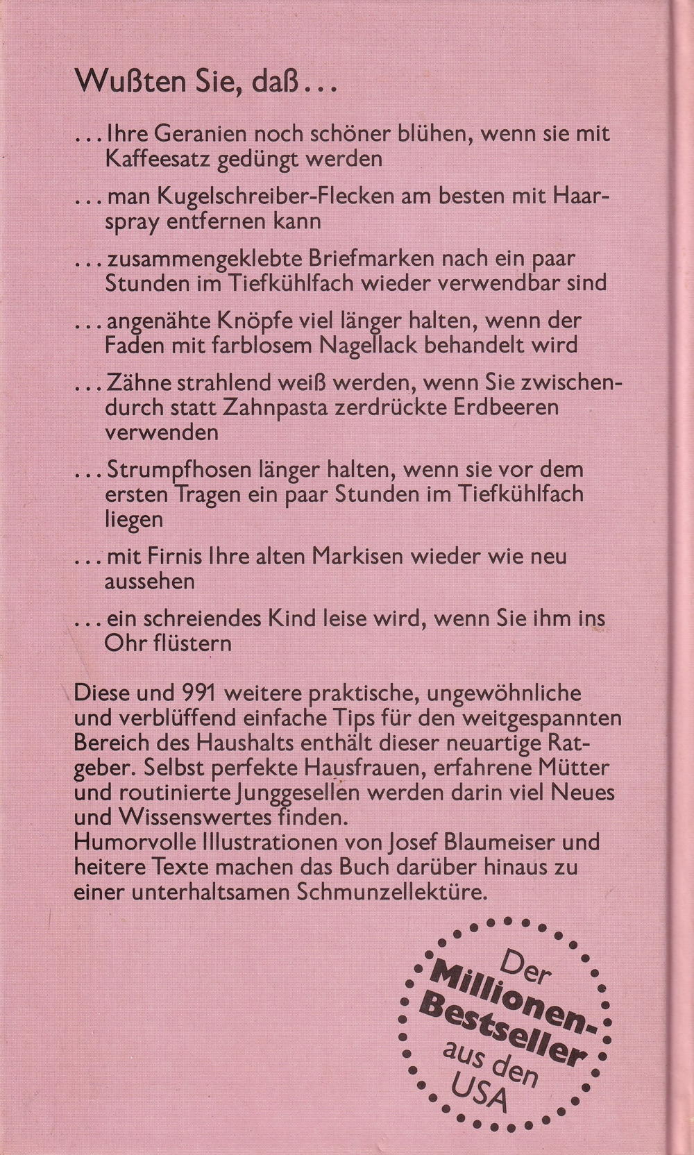 ... angenähte Knöpfe viel länger halten, wenn der Faden mit farblosem Nagellack behandelt wird ... Zähne strahlend weiss werden, wenn Sie zwischendurch statt Zahnpasta zerdrückte Erdbeeren verwenden