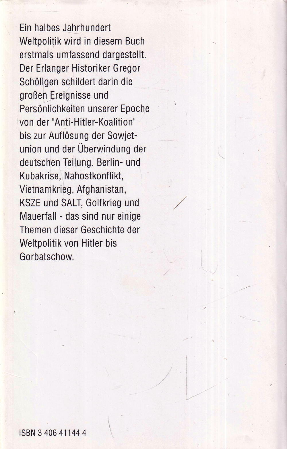 Ende der achtziger, Anfang der neunziger Jahre fand mit der Auflösung der Sowjetunion und der Wiedervereinigung Deutschlands eine radikale Umwälzung der politischen Verhältnisse statt, die seit dem zweiten Weltkrieg wie festzementiert schienen. Mit dem Jahr 1941 beginnend, berichtet Gregor Schöllgen über die grossen Politiker, die in den letzten 50 Jahren Weltpolitik schrieben, und geht den politischen, wirtschaftlichen und militärischen Entwicklungen dieser Jahrzehnte nach.