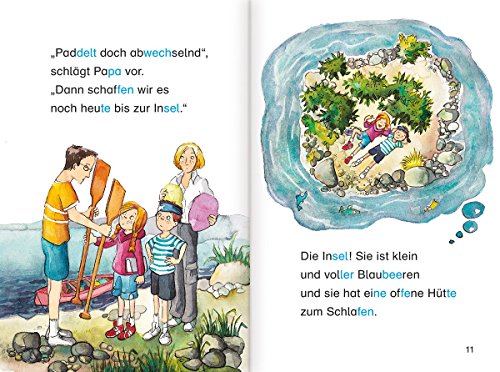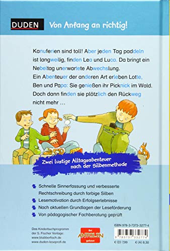 Ein ganz besonderer Ferientag: Paddelferien in Schweden sind toll! Aber jeden Tag Kanufahren ist langweilig, finden Lea und Luca. Da bringt ein grauer Nebeltag unerwartete Abwechslung. So geht zeitgemässe Leseförderung: Dieses Buch aus der Erstlesereihe Leseprofi von FISCHER Duden Kinderbuch sorgt mit liebevollen Geschichten und tollen Illustrationen für Lesespass. Der Text ist genau auf die Bedürfnisse der Jungen und Mädchen zugeschnitten. So erleben sie schnell motivierende Erfolge. Alle Wörter sind farblich in ihre Sprechsilben gegliedert. So erkennen die Kinder schnell den Sinn der einzelnen Wörter (Blumento-Pferde? Die Silbentrennung schafft Klarheit: Blu-men-topf-er-de!). Ein schnelles Textverständnis ist so gewährleistet und führt zu einem effizienten und routinierten Leseprozess. Alle Titel der Reihe werden bei Antolin gelistet. Duden – von Anfang an richtig!