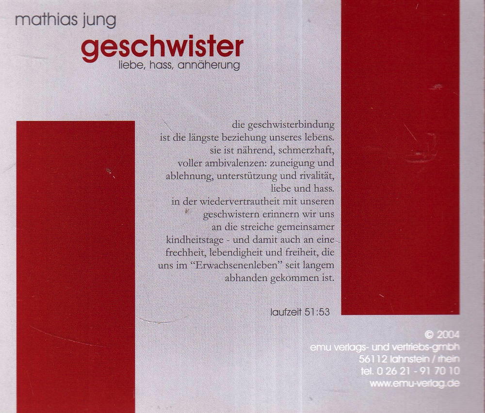Mathias Jung gelingt es mal wieder Chancen aufzuzeigen und Mut zu machen. Ein gestörtes Verhältnis zum Bruder oder zur Schwester kann wiederbelebt werden und sich in eine wahre Freundschaft fürs Leben umwandeln!