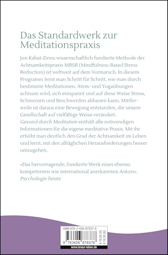 »Gesund durch Meditation« hat sich als eines der erfolgreichsten Bücher etabliert, um schrittweise Gelassenheit, Präsenz und dauerhafte Gesundheit zu erlangen. Das wissenschaftlich geprüfte Achtsamkeitstraining MBSR (mindfulness-based stress reduction) kombiniert Meditationen, Atem- und Yoga-Übungen zu einem ganzheitlichen Ansatz. Der weltweit renommierte Achtsamkeits-Lehrer und Meditations-Forscher Jon Kabat-Zinn hat mit der MBSR-Methode Meditation für das alltägliche Leben der Menschen zugänglich gemacht. Wie hilfreich eine solche Praxis gerade in herausfordernden Zeiten sein kann, wird nirgendwo so deutlich, wie in diesem Grundlagenbuch. »Gesund durch Meditation« beleuchtet anschaulich das weitverbreitete Phänomen Stress und bietet wirkungsvolle Massnahmen, um eine tiefgreifende Veränderung der inneren Haltung und Einstellung zum Leben zu erreichen. Chronisch kranke Menschen und Schmerzpatienten finden hier hilfreiche Hinweise für einen entspannten Umgang mit ihren Beschwerden. In diesem Meditations-Ratgeber finden Sie fundierte Anleitungen und Anti-Stress-Übungen für Anfänger und Fortgeschrittene – egal ob bei chronischen Schmerzen oder als Einstieg in die Meditation. Jon Kabat-Zinn verbindet auf einzigartige Weise östliche Weisheit mit westlicher Wissenschaft und ebnet den Weg zu einem achtsamen und erfüllten Leben. Diese Taschenbuchausgabe des Klassikers ist eine vom Autor autorisierte gekürzte Fassung. Die ungekürzte Langfassung ist unter demselben Titel als Hardcover erhältlich.