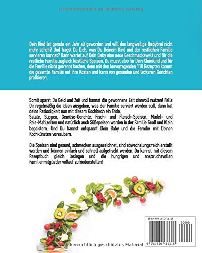 Gesunde und appetitliche Speisen für ein Kleinkind können gleichzeitig auch der ganzen Familie sehr gut schmecken. Dabei profitierst Du doppelt: Du erhältst kreative Rezepte, die schnell und einfach gelingen! Dabei wurde auf ausreichend Abwechslung der Rezepte und eine gute Versorgung mit den wichtigen Nährstoffen berücksichtigt.
