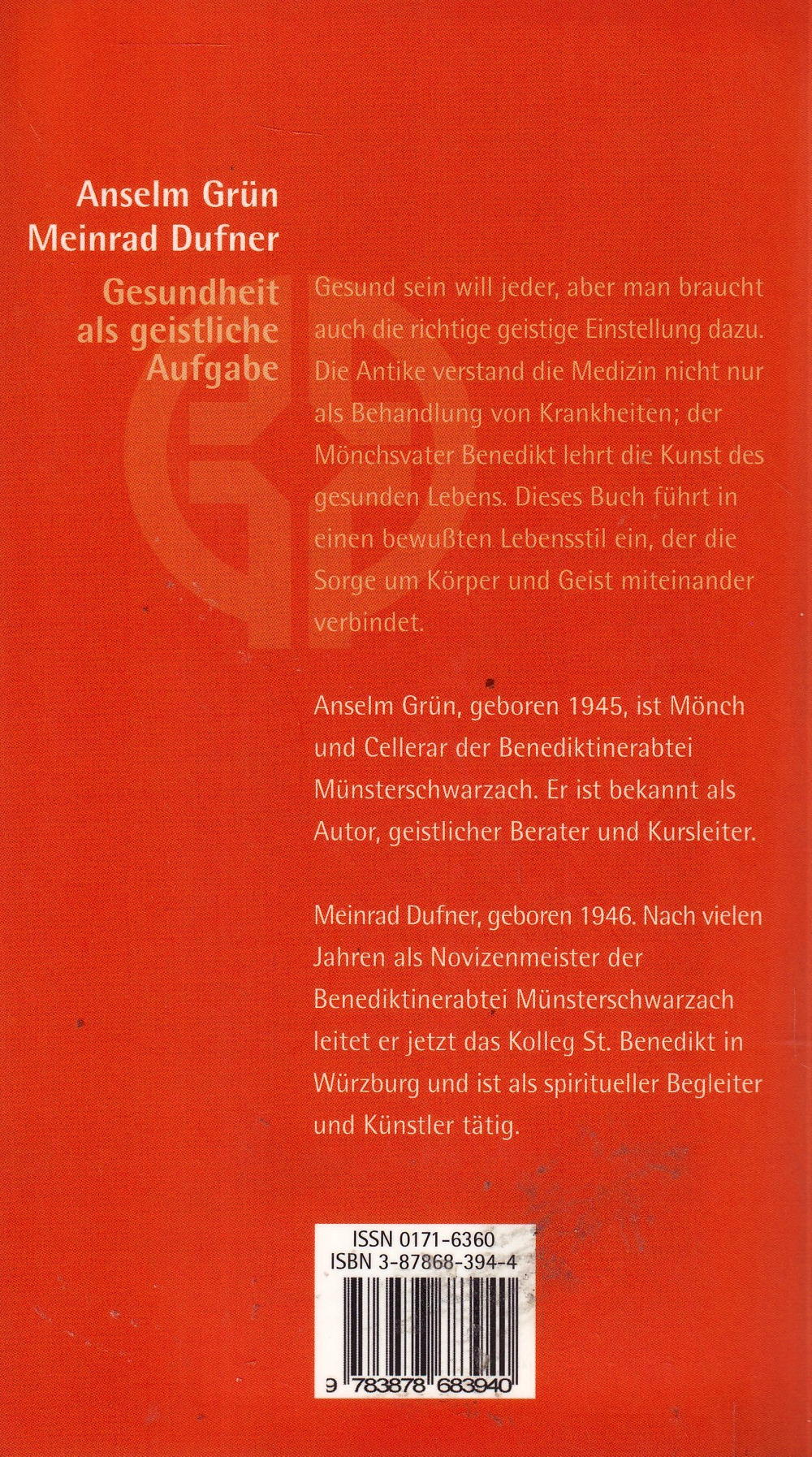 Dr. theol. Anselm Grün, geb. 1945, verwaltet die Benediktinerabtei Münsterschwarzach. Kursleiter für Fasten und Kontemplation, einer der meistgelesenen spirituellen Autoren der Gegenwart. 2007 wurde ihm das Bundesverdienstkreuz verliehen.