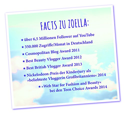 Zoe Sugg alias Zoella ist eine 24-jährige Videobloggerin aus Brighton. Ihre Beauty-, Fashion- und Styling-Vlogs haben ihr auf YouTube Millionen von Followern eingebracht, die Zahlen steigen kontinuierlich. In den letzten Jahren hat Zoella zahlreiche Preise erhalten, darunter 2012 den "Best Beauty Vlogger Award" und 2014 den Nickelodeon-Preis der Kids Choice Awards als "Grossbritanniens beliebteste Vloggerin". Bei den Teen Choice Awards 2014 wurde sie "Web Star für Fashion und Beauty".
