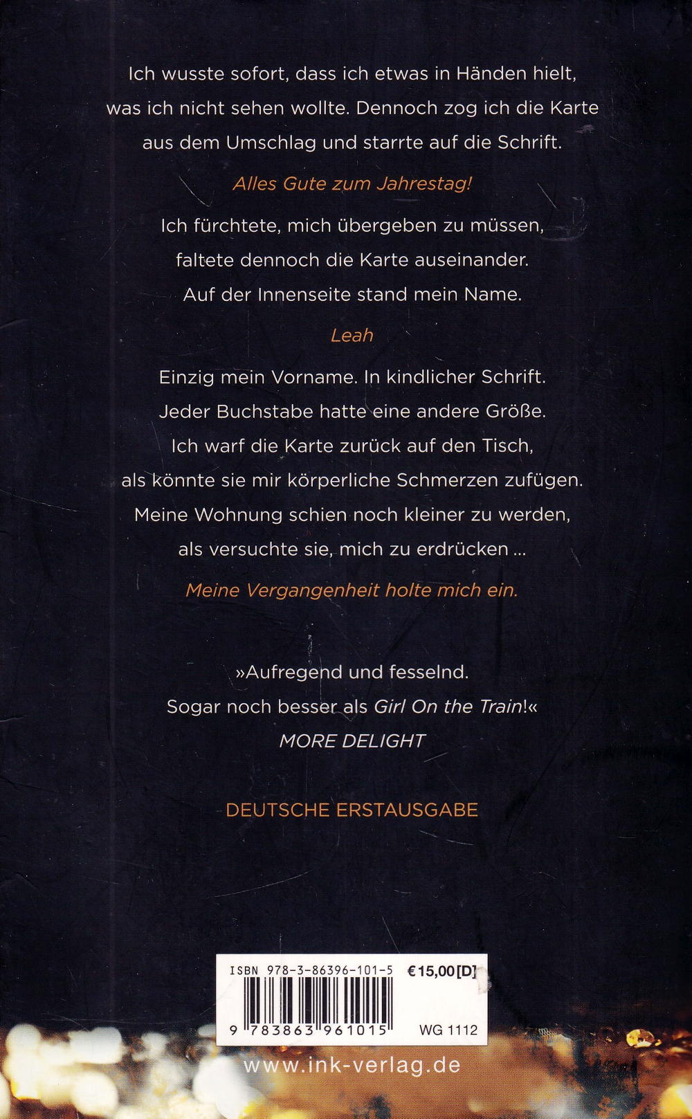 Ich fürchtete, mich übergeben zu müssen, faltete dennoch die Karte auseinander. Auf der Innenseite stand mein Name. Leah Einzig mein Vorname. In kindlicher Schrift. Jeder Buchstabe hatte eine andere Grösse. Ich warf die Karte zurück auf den Tisch, als könnte sie mir körperliche Schmerzen zufügen. Meine Wohnung schien noch kleiner zu werden, als versuchte sie, mich zu erdrücken...Meine Vergangenheit holte mich ein.