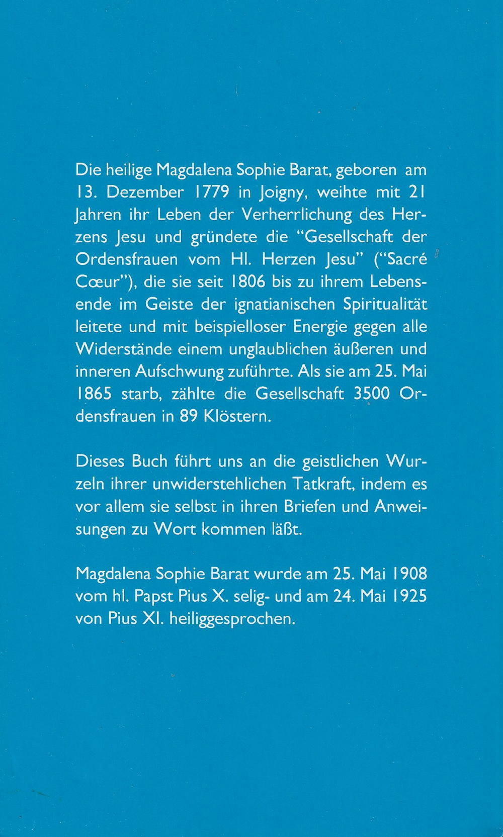 Coeur"), die sie seit 1806 bis zu ihrem Lebensende im Geiste der ignatianischen Spiritualität leitete und mit beispielloser Energie gegen alle Widerstände einem unglaublichen äusseren und inneren Aufschwung zuführte. Als sie am 25. Mai 1865 starb, zählte die Gesellschaft 3500 Ordensfrauen in 89 Klöstern.