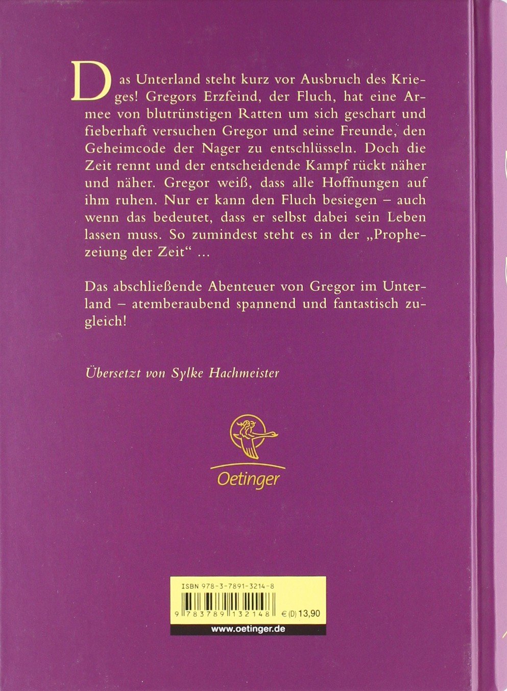 Frieden und Freiheit für das Unterland: Gregor riskiert sein Leben – und seine Liebe Krieg steht bevor! Der Fluch, die weisse Ratte, will zum vernichtenden Schlag gegen die Unterländer ausholen. Für Gregor ist es keine Frage, dass er seinen Freunden hilft – und Luxa, in die er verliebt ist. Bei ihm sind Lizzie, seine ängstliche Schwester, und die kleine Boots, der Liebling der Unterländer. Fieberhaft versuchen alle, den komplizierten Code zu knacken, mit dem die Ratten sich verständigen. Doch damit ist die Katastrophe noch nicht abgewendet, denn die Prophezeiung sagt, dass Gregor, der Krieger, diesen Kampf nicht überstehen wird … Das Finale der fünfbändigen Gregor-Saga - zum Mitfühlen und Mitfiebern! Atemlos spannend!