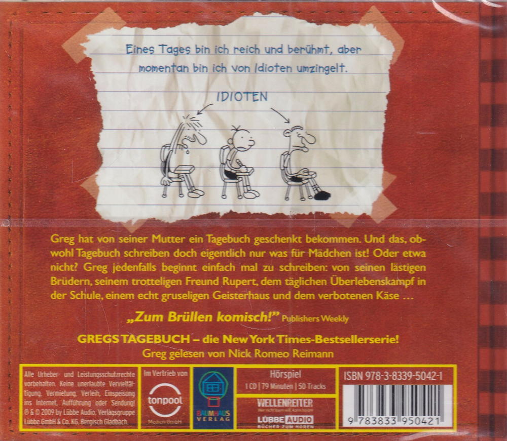 Greg hat von seiner Mutter ein Tagebuch geschenkt bekommen. Und das, obwohl Tagebuch schreiben doch eigentlich nur was für Mädchen ist! Oder etwa nicht? Greg jedenfalls beginnt einfach mal zu schreiben: von seinen lästigen Brüdern, seinem trotteligen Freund Rupert, dem täglichen Überlebenskampf in der Schule, einem echt gruseligen Geisterhaus und dem verbotenen Käse.